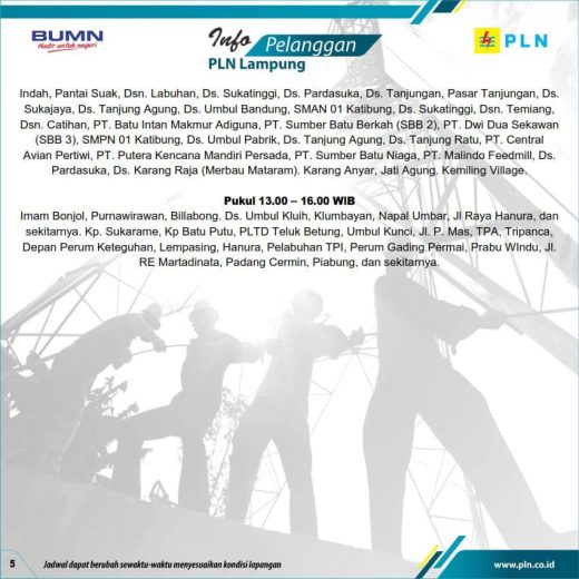 “Adapun pemeliharaan jaringan tersebut dilaksanakan sebagai bentuk upaya PLN Lampung dalam menjaga keandalan jaringan,” kata PLN, melalui akun medsos resminya, Selasa (28/4/2020).