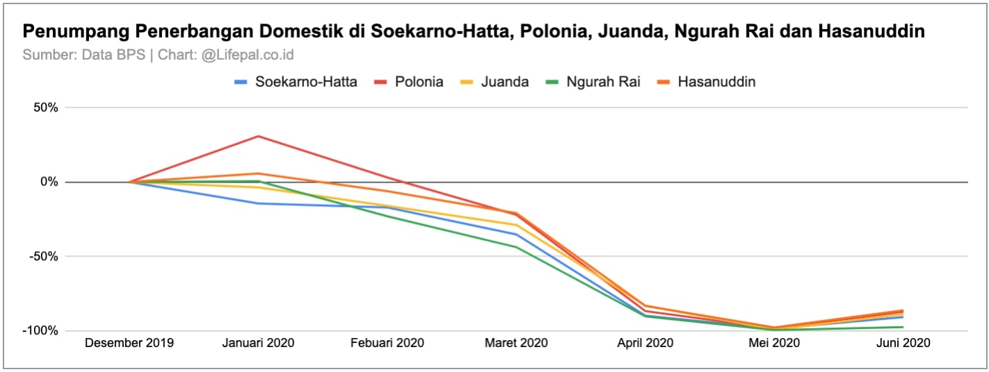 Riset Lifepal.co.id menemukan bahwa pengeluaran wisatawan domestik Indonesia untuk transportasi dan akomodasi turun hingga 90% per bulan sejak awal pandemi di bulan Maret hingga Juni 2020.