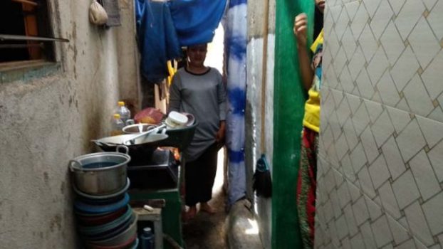Untuk menuju rumah atau kamarnya harus melewati gang selebar 60 centimeter yang juga difungsikan untuk dapur, baru menuju kamarnya yang disebut rumah.