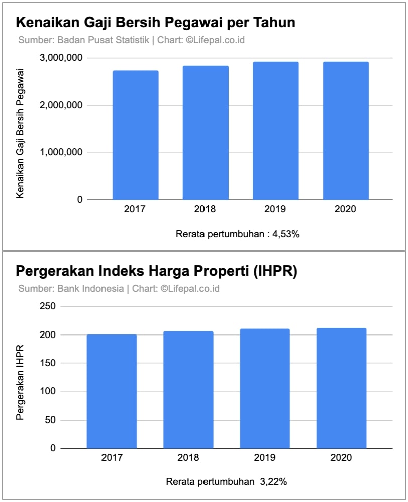 Terhitung sejak tahun 2017 hingga 2020, kenaikan upah gaji bersih pegawai di Indonesia secara rata-rata mencapai 4,53%. Sementara itu, kenaikan IHPR juga terus mengalami pertumbuhan setiap tahunnya dengan rata-rata nilai 3,22%.