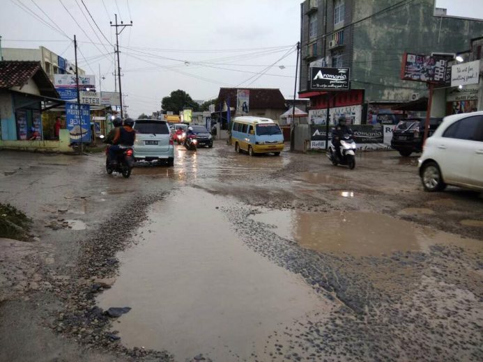 Kerusakan jalan yang tak kalah parahnya juga terjadi di Jl. K.H. Gholib. Jika hujan turun, sejumlah ruas di jalan yang mengambil nama tokoh pejuang dari Pringsewu itu berubah jadi ‘taman kubangan.
