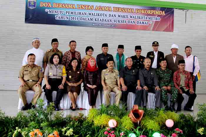 | Pj Walikota Metro Achmad Chrisna Putra bersama para tokoh agama dan Forkompimda Metro pada acara doa bersama menjelang pilkada di Kota Metro, Selasa (8/12/2015). |
