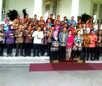 Iwan J Sastra/Teraslampung.com Presiden Jokowi dan Menko Pembangunan Manusia dan Kebudayaan Puan Maharani foto bersama dengan para kepala daerah atau perwakilannya, usai penyerahan penghargaan Kota Layak Anak Tahun 2015, di Israna Bogor, Selasa...