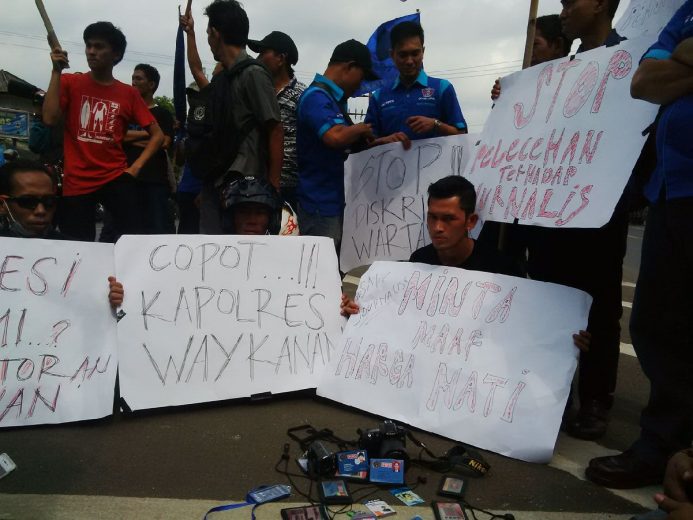 ”Kami minta pak Kapolres Way Kanan mencabut dan meminta maaf perkataan yang telah menghina profesi wartawan,” tegas koordinator aksi, Iwansyah Mega.