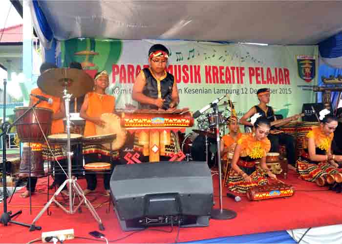 BANDARLAMPUNG, Teraslampung.com — Pelajar-pelajar bersama kelompoknya tampil atraktif dan kreatif dalam ajang Parade Musik Kreatif Pelajar yang digelar di Taman Santap, Jalan Wolter Mongonsidi, Telukbetung, Sabtu (12/12) lalu.