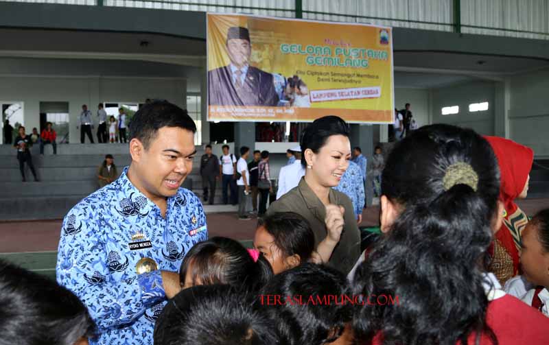 Iwan J Sastra/Teraslampung.com Bupati Lampung Selatan Rycko Menoza dan Bunda Paud Ny. Pitka Rycko Menoza menyalami para siswa. KALIANDA – Kantor Perpustakaan dan Arsip Daerah (KPAD) Kabupaten Lampung Selatan, menggelar acara Gelora...