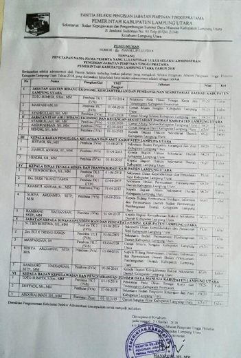 Feaby|Teraslampung.com Kotabumi–Posisi jabatan Kepala Dinas Administrasi Kependudukan dan Catatan Sipil (Disdukcapil), dan Kepala Dinas Tenaga Kerja dan Transmigrasi (Disnakertrans) Lampung Utara menjadi yang paling banyak diminati oleh peser...