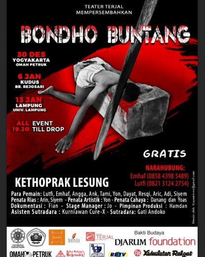 Malam Ini, Teater Terjal FIB UGM Pentaskan “Bondho Buntang” di Aula FKIP Unila