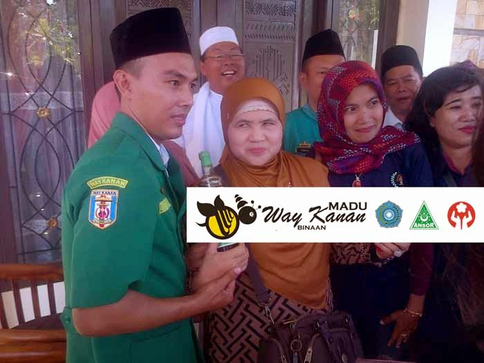 berkah dan kebaikan,” kata Mama Dedeh, setelah menerima madu yang diserahkan oleh Wakil Bendahara PC GP Ansor Waykanan Ery Rezki Putra di depan Rumah Dinas