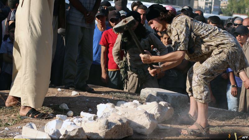 Gambar yang dikeluarkan oleh media propaganda Islamis Welayat Halab (2/7/2015) diduga menunjukkan anggota kelompok ISIS menghancurkan artefak yang diselundupkan dari kota Palmyra, Suriah. Foto: voaindonesia.com/afp JAKARTA–Seorang...