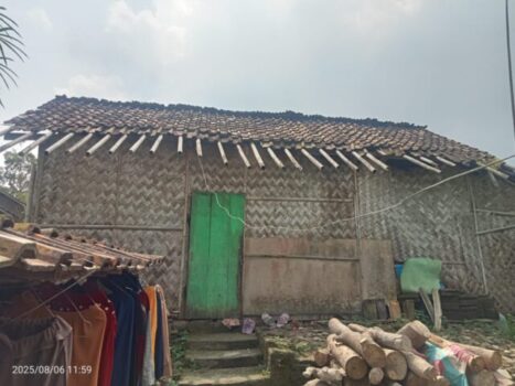 Bahkan atap gentengnya juga banyak yang sudah pecah dan bocor, bahkan ada juga yang sudah tidak ada. Sehingga jika hujan turun, rumah bilik bambu reyot yang ditempatinya puluhan tahun bocor dimana-mana, sehingga seluruh ruangan rumah basah dan lantai tanah becek.