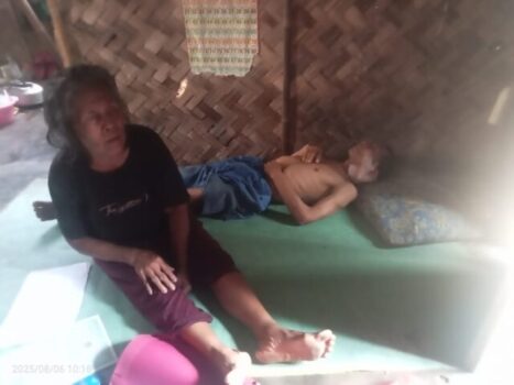 Ketika awak media bersama seorang bidan Desa Kalirejo mendatangi rumah Mbah Slamet, Rabu (6/8/2025) siang, tampak terlihat Mbah Slamet dengan celana pendek dan telanjang dada (tidak pakai baju) tengah berbaring tiduran dilantai tanah beralaskan karpet spons. Sementara istrinya, Poniem tengah duduk berada disamping suaminya.