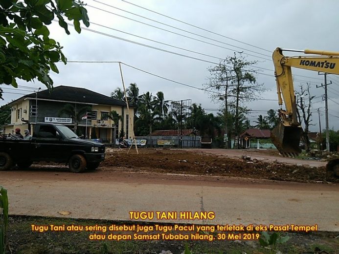 Saya terkejut ketika hari ini, Kamis, 30 Mei 2019 sekira pukul 13.19 WIB, ada seseorang menghubungi saya yang menanyakan nasib Tugu Tani. Ada juga yang menyebut Tugu Pacu yang berdiri gagah tepat dipertigaan eks Pasar Tempel yang sekarang keren disebut Pertigaan Samsat Tubaba.