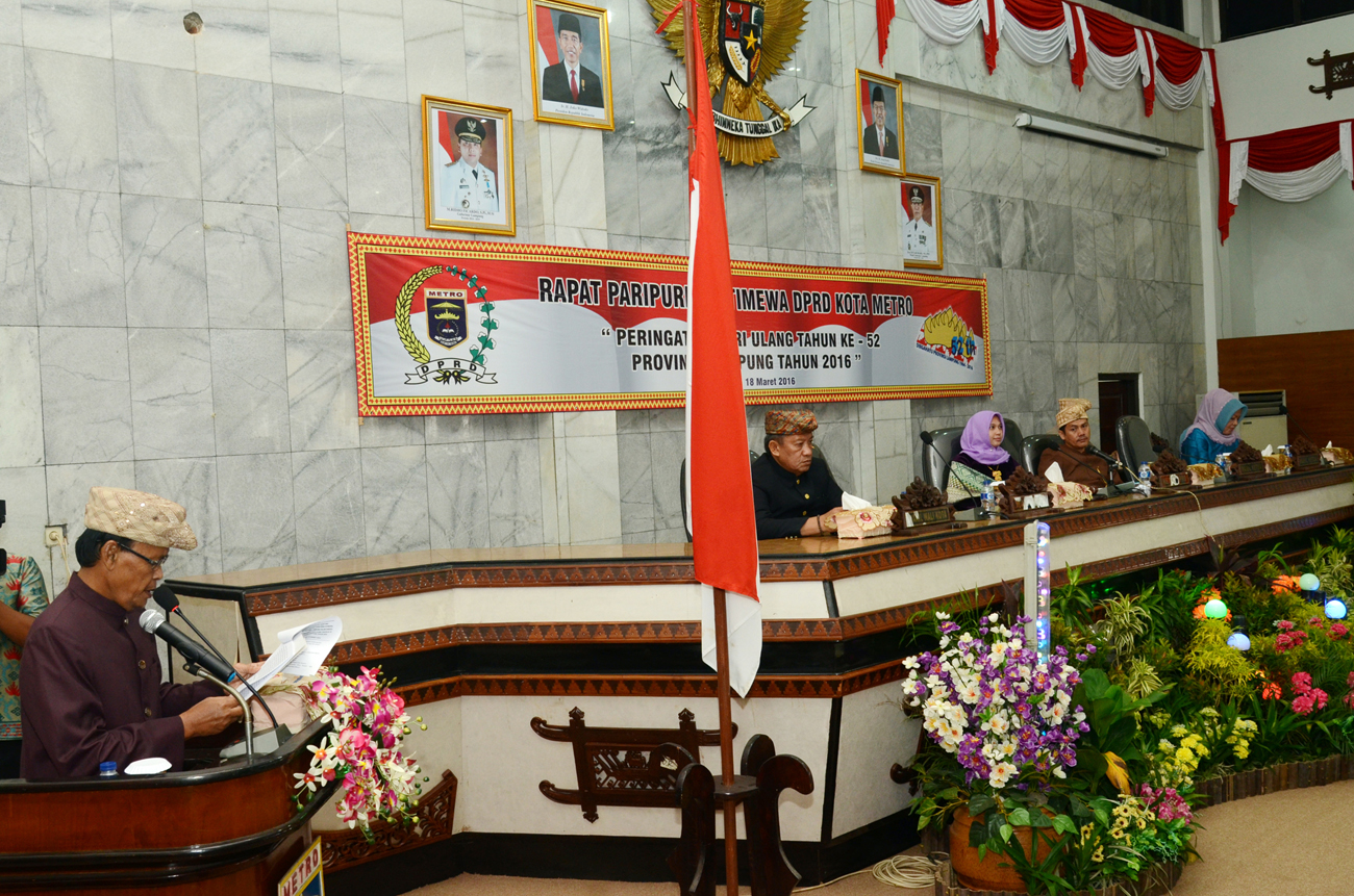 Rapat yang dipimpin langsung oleh Ketua DPRD Kota Metro Anna Morinda berlangsung dengan hikmat. Pada kesempatan ini pula turut hadir Walikota Metro Achmad Pairin, Wakil Walikota Metro Djohan, Anggota DPRD, Fokorprimda Kota Metro, Sekda Metro Ishak. Selain itu juga hadir Staf Ahli, Asisten, Pimpinan Perguruan Tinggi, Kepala SKPD, Ketua Tim Penggerak PKK, Ketua Dharma Wanita dan Pejuang Lampung.