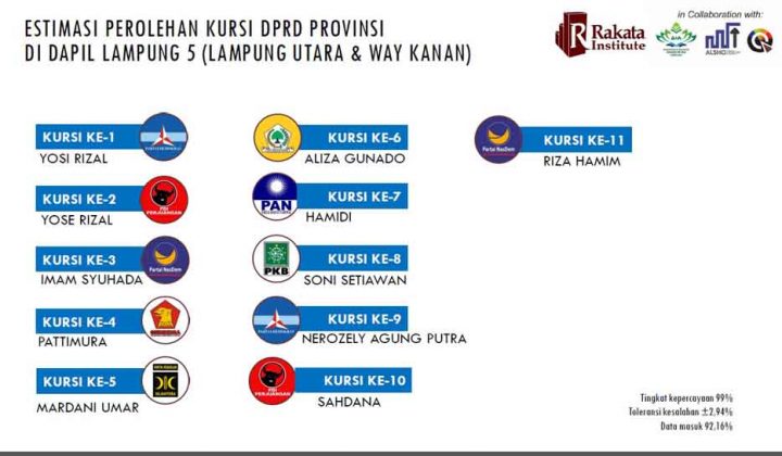 Para Caleg DPRD Lampung Dapil 5 Peraih Kursi Menurut Quick Count Rakata
