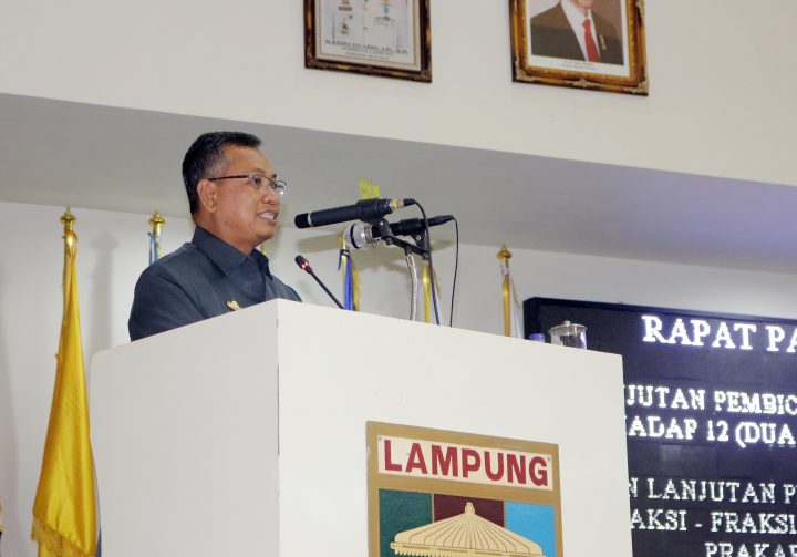 Hal ini disampaikan dalam Rapat Paripurna DPRD Provinsi Lampung dalam rangka lanjutan pembicaraan tingkat I tentang pendapat kepala daerah terhadap 12 Raperda usul inisiatif DPRD Provinsi Lampung serta lanjutan pembicaraan tingkat I tentang pemandangan umum fraksi-fraksi DPRD Provinsi Lampung terhadap empat Raperda Prakarsa Pemerintah Daerah Provinsi Lampung di ruang sidang DPRD Provinsi Lampung, Kamis (27/04/2017).