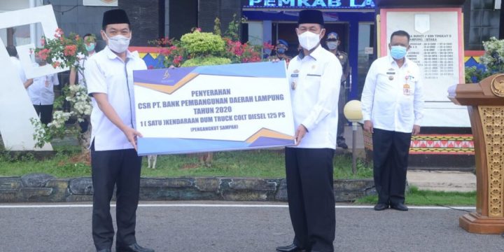 LAMPUNG UTARA – Pemkab Lampung Utara menerima bantuan dump truck dari PT Bank Pembangunan Daerah (BPD) Lampung. Bantuan tersebut merupakan bagian dari program Corporate Social Responsibility (CSR) Bank Lampung.
