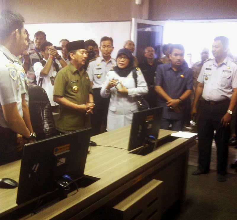 | Walikota Herman HN saat meremikan Gedung ATCS di Terminal Rajabasa, Selasa (6/1). |
