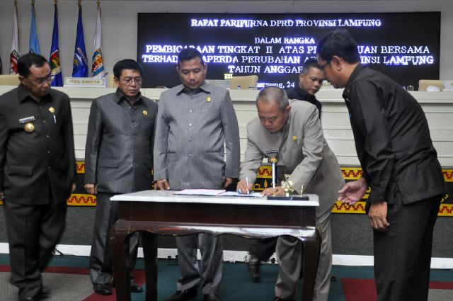 BANDARLAMPUNG, Teraslampung.com–Pemerintah Provinsi Lampung dan DPRD sepakat untuk menetapkan Raperda Provinsi Lampung tentang Perubahan APBD Tahun Anggaran 2015 menjadi Peraturan Daerah. Peraturan Daerah (Perda) tersebut selanjutnya akan disampaikan kepada Menteri Dalam Negeri untuk dievaluasi sesuai ketentuan Peraturan Perundangan.