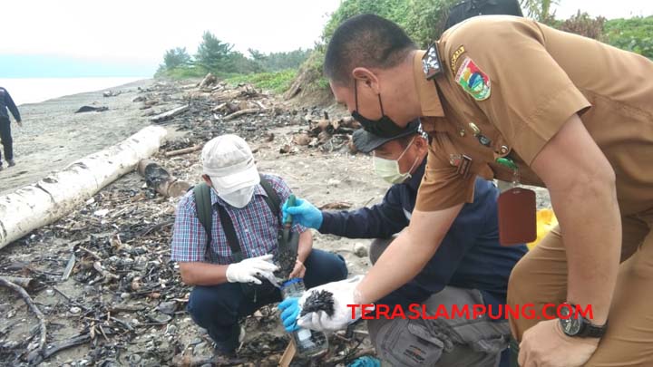 TERASLAMPUNG.COM — Tim Kementerian Lingkungan Hidup dan Kehutanan (KLHK), Mabes Polri, dan Polda Lampung, Rabu (15/9/2021) sudah mulai turun ke lapangan untuk melakukan penyelidikan dugaan pencemaran pantai di pesisir Lampung yang mengandung minyak yang menyebar di perairan Teluk Semaka, Pesawaran, Bandarlampung, dan Lampung Selatan, ditangani Kementerian Lingkungan Hidup dan Kehutanan (KLHK).