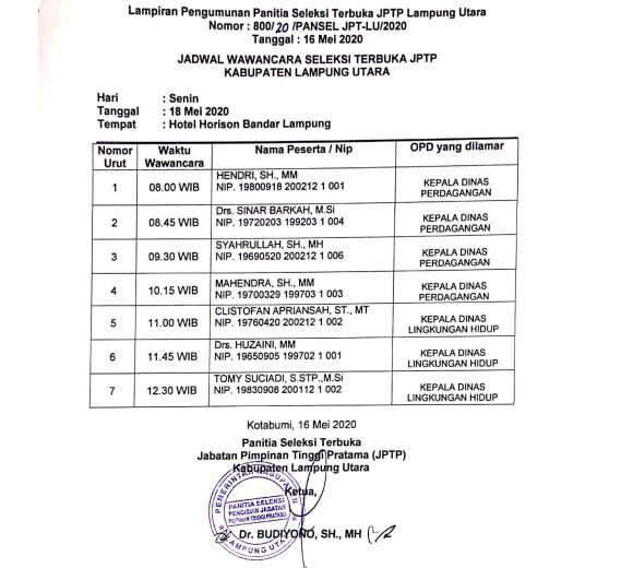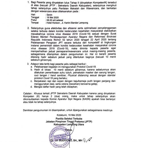 Pengumuman JPTP 2020 Tahap II Pemkab Lampung Utara