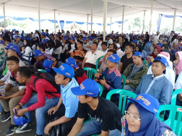 Cara yang dilakukan paslon Ridho-Bachtiar dalam menggaet simpati generasi milenial, mengelar konser musik salam satu jari, di Lampung Utara, Rabu (18/4/2018). Hal ini disampaikan Ansori Saba ketua komando pemenangan Ridho berBakhti Kota Bumi.