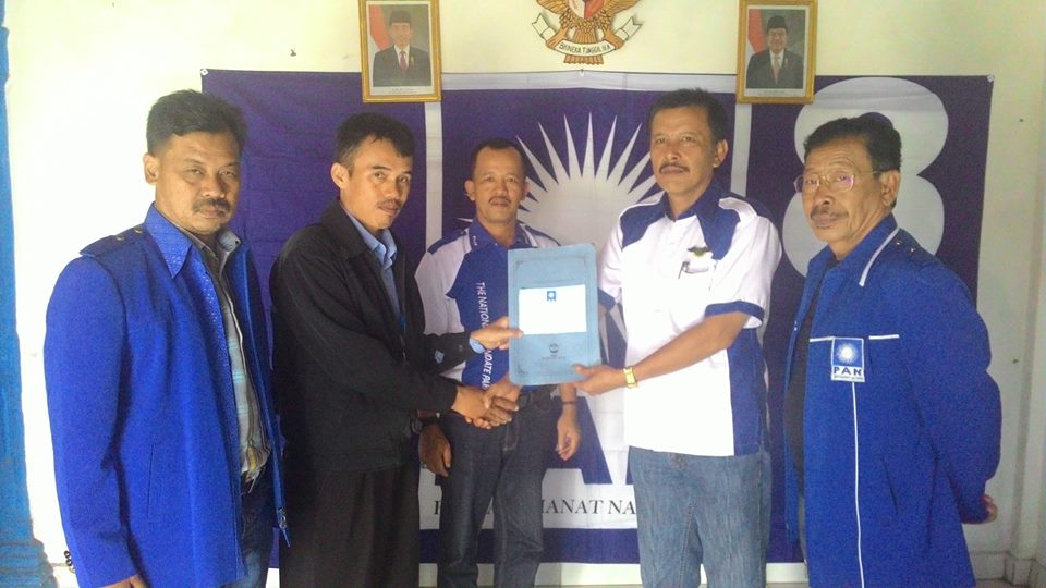 | Zulkarnain Zubairi menyerahkan berkah pencalonan bakal calon Bupati Lampung Barat d DPD PAN Lampung Barat, Kamis (14/4/2016). |