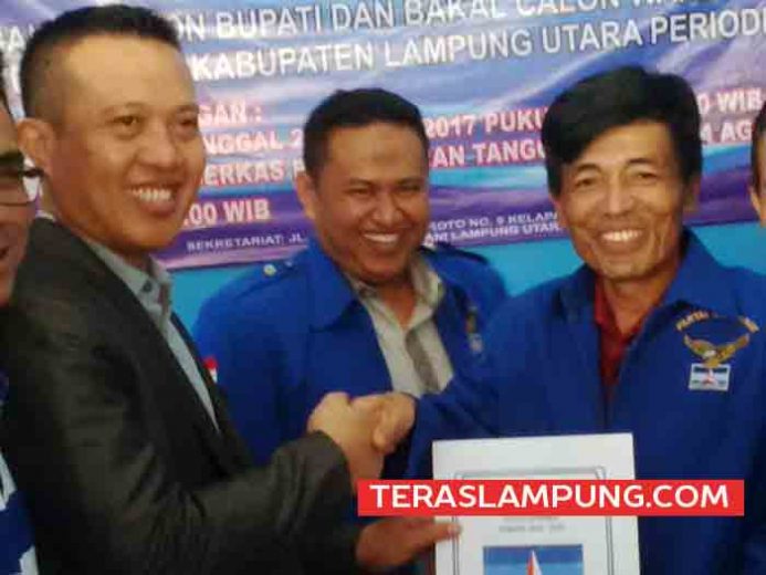 Kotabumi–Bakal calon Bupati dan Wakil Bupati Lampung Utara (Balonbup dan balon wabup Lampura), Nerozely Agung Putra dan M. Yusrizal, mengembalikan persyaratan pencalonan pemilihan kepala daerah Lampung Utara kepada panitia penjaringan calon Bupati dan Wakil Bupati Lampung Utara di DPC Partai Demokrat Lampura, Rabu (2/8/2017).