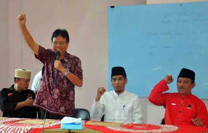 | Erwin Arifin berpidato di depan para pengurus dan kader PDIP Lampung Timur. (Foto: Teraslampung.com/Edi) |