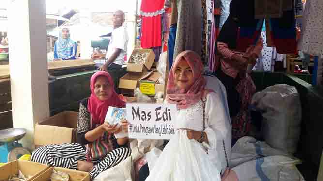Selain sebagai upaya sosialisasi, mendukung gerakan Indonesia Ayo Belanja ke Pasar Rakyat atau Pasar Tradisional, Mas Edi membagikan alat berbentuk perlengkapan dan peralatan pertolongan kesehatan (P3K). P3K yang dibagikan antara lain semacam gunting, lakban, beberapa obat luka dan semacamnya.