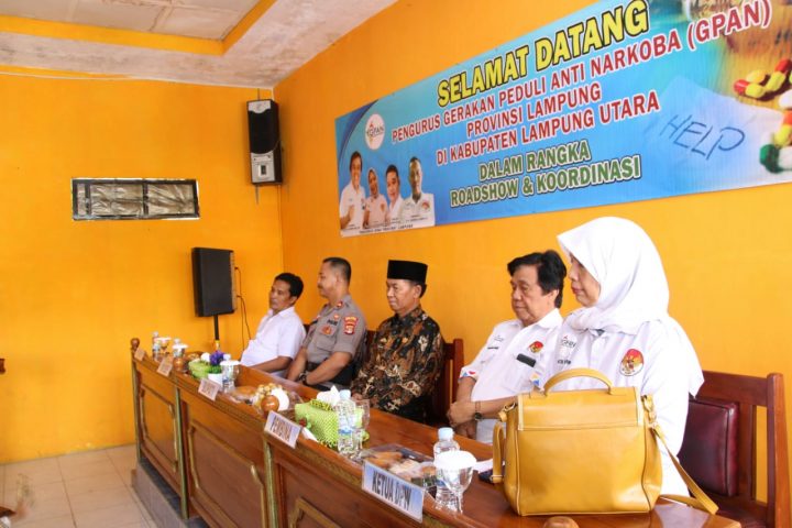 LAMPUNG UTARA — Pelaksana Tugas (Plt) Bupati Lampung Utara, Budi Utomo, menghadiri acara Road Show dan Koordinasi Dewan Pengurus Wilayah Gerakan Peduli Anti Narkoba Provinsi Lampung di Aula SMA Kemala Bhayangkari Kotabumi, Kamis, (27/2/2020).