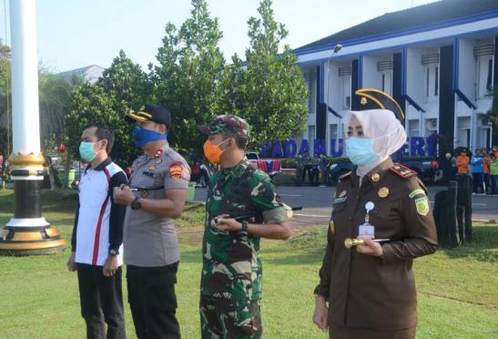 LAMPUNG UTARA — Pelaksana tugas (Plt) Bupati Lampung Utara, Budi Utomo, S.E., M.M. memimpin apel siaga Gugus Tugas Covid-19 bersama di Lapangan Pemkab Lampung Utara, Kamis (26/3/2020).