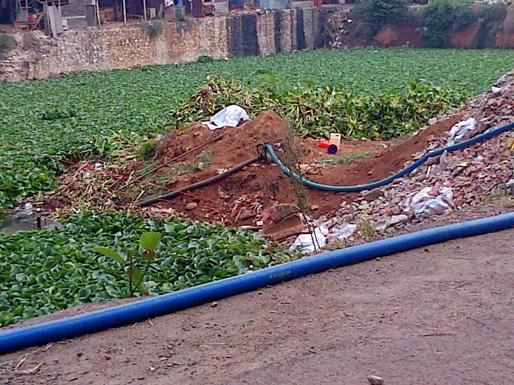 (20/10) di lokasi hanya terdapat mesin penyedot air di kubangan air yang sudah dipenuhi eceng gondok .