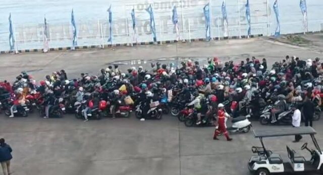 Ribuan pemudik motor yang sebelumnya ditampung terlebih dulu diarea tunggu, diberangkatkan melalui semua dermaga. Begitu juga dengan kendaraan roda empat (pribadi) pemudik.