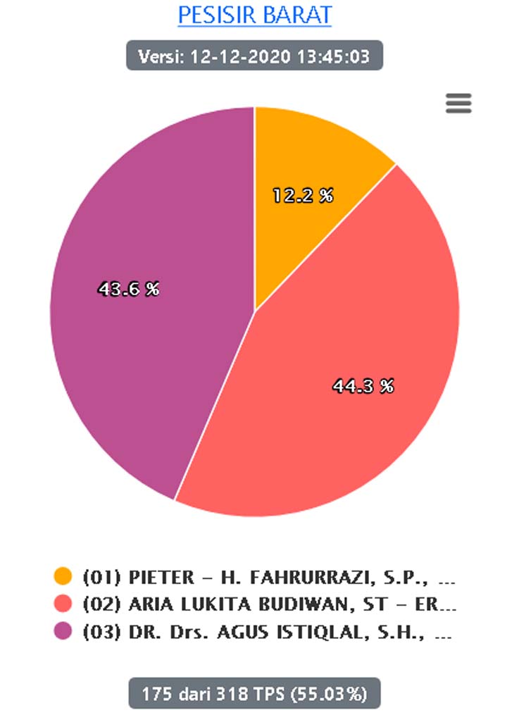 Di Pesisir Barat, sejak Jumat (11/12/2020) paslon Aria Lukita-Erlina membalikkan keadaan dengan mengungguli paslon Agus Istiqlal-A.Zulqoini Syarif.