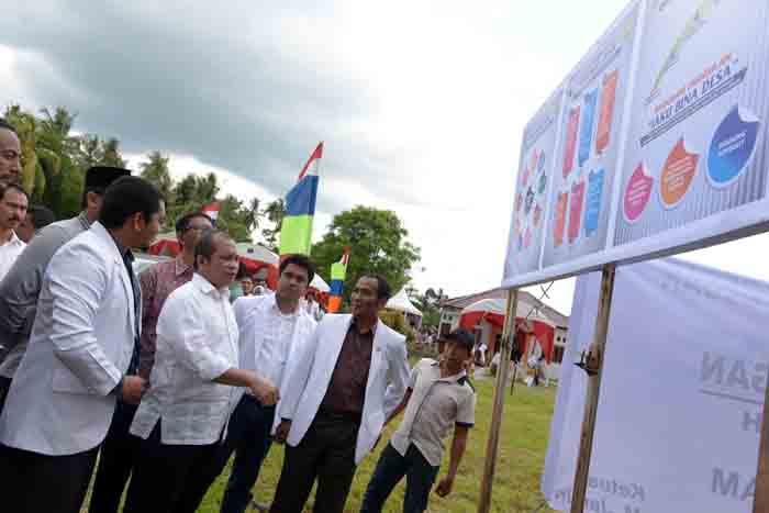 Menteri Desa, Pembangunan Daerah Tertinggal dan Transmigrasi Marwan Jafar meresmikan Desa Binaan Ikatan Alumni Kedokteran Unsyiah di Desa Blangtingkum, Kemukiman Leumbata, Kabupaten Aceh Besar, Aceh, Minggu (8/5/2016). BANDA ACEH, Teraslampu...
