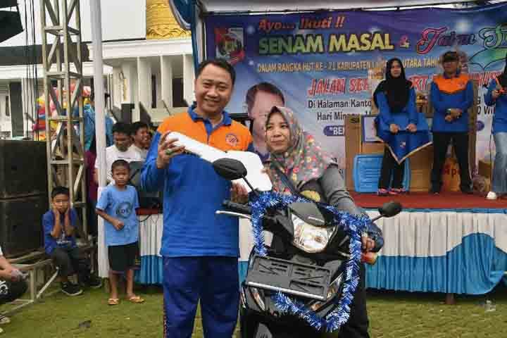 Di sisi lain, Sunarto, warga Kelurahan Rejosari, Kotabumi yang mendapat hadiah utama, yakni 1 unit mobil Daihatsu Ayla tak mampu menyembunyikan kegembiraannya. ia menyampaikan rasa terima kasihnya kepada Bupati Agung yang telah menyelenggarakan kegiatan ini.