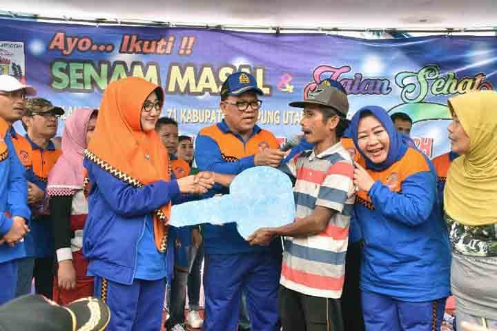 “Dengan tubuh dan jiwa yang sehat, kita dapat terus bersama memajukan Lampung Utara tercinta,” katanya.