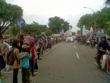 Warga Yogya berdiri di samping jalan untuk memberi penghormatan kepada jenazah Gusti Joyo (Foto: Detik.com) |