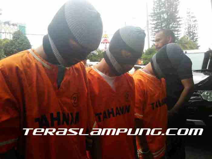 | Roby (tengah) bersama Anggi dan Marga dibawa ke Polresta Bandarlampung |
