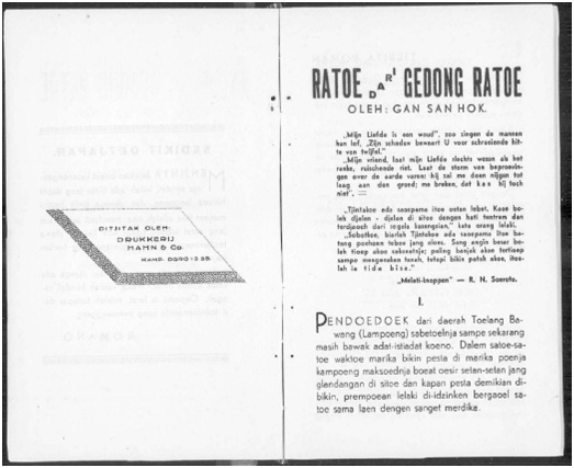 Bagian pembuka roman Ratoe dari Gedong Ratoe |
