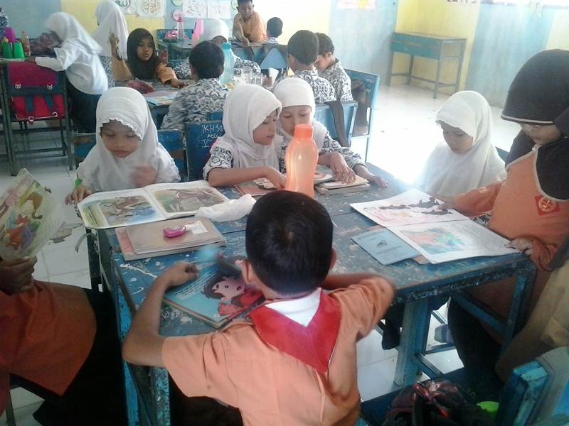Setiap Sabtu, pada istirahat pertama, lanjut Nurnianti, anak-anak memilih bacaan yang akan mereka pinjam selama satu pekan ke depan. Mereka pun nampak sangat antusias sekali memilih bacaan yang dijajarkan di depan kelas mereka.