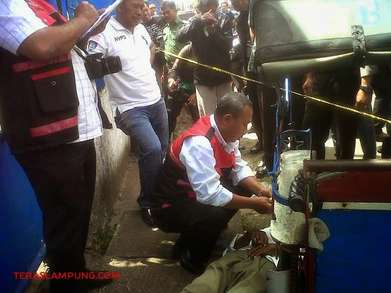 BANDARLAMPUNG, Teraslampung,com — Petugas Inafis dari Polres Bandarlampung melakukan olah tempat kejadian perkara (TKP) di lokasi ditemukannya mayat Suhasan (70), seorang tukang becak, di Jalan Laksamana Malahayati, Kelurahan, Pesawahan Telukbetung Selatan, Senin (4/5.