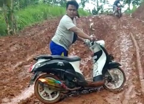 Kala itu, Herman merekam video dan memposting kondisi jalan berlumpur setelah diguyur hujan. Dia pun menuliskan kondisi jalan tersebut.
