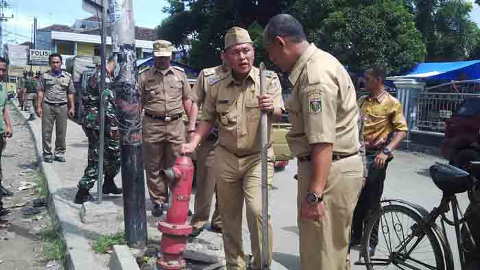 | Bupati Lampung Tengah Mustafa (memagang kayu) sidak di Bandarjaya Plaza, Senin (9/5/2016). |