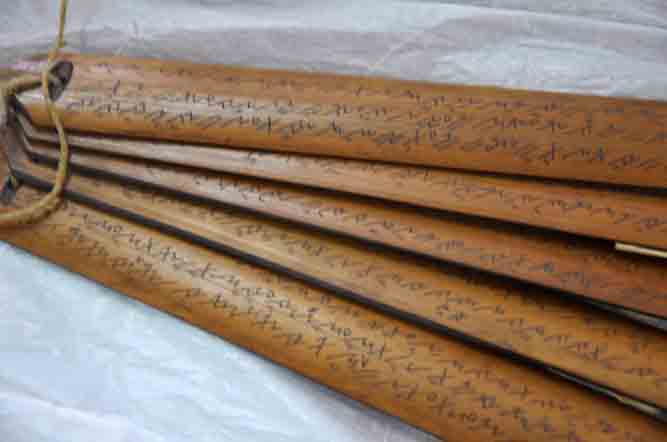 Naskah Lampung di bilah bambu koleksi Perpustakaan Nasional. Kode: 97/47-97E110. (Foto: M. Arman AZ) |