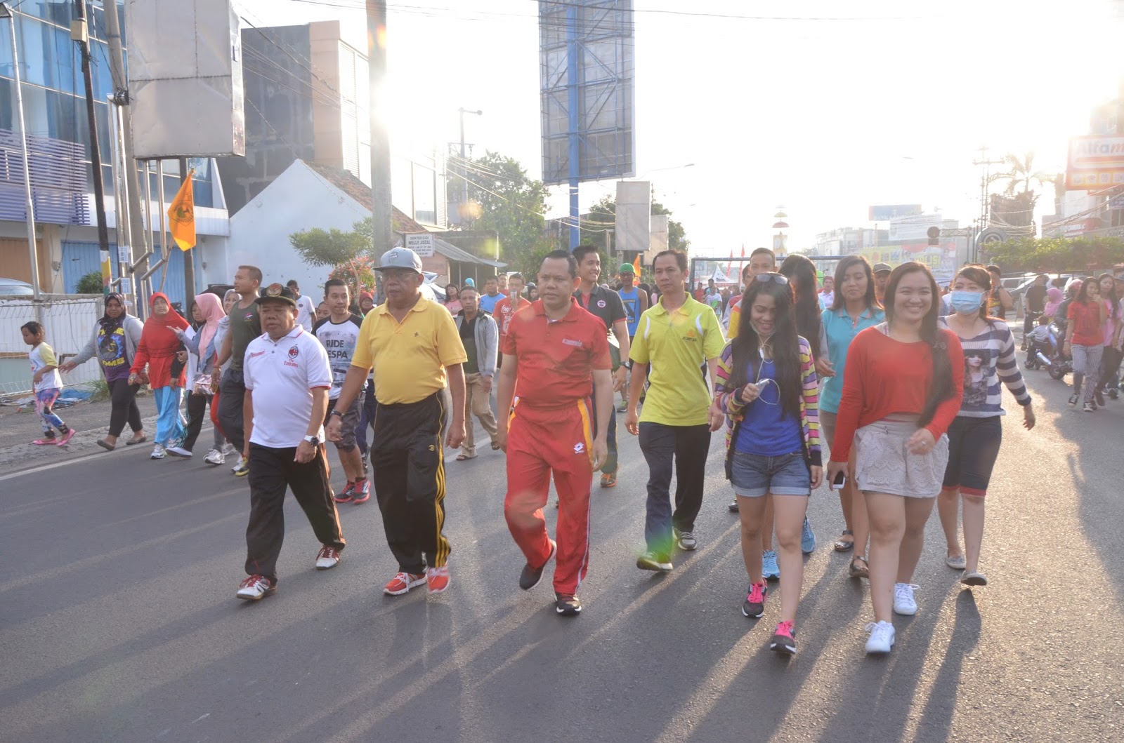 | Pj. Walikota Bandar Lampung Sulpakar berjalan bersama masyarakat Kta Bandar Lampung menuju kawasan car free days di bundaran tugu Adipura, Minggu pagi (13/12). |