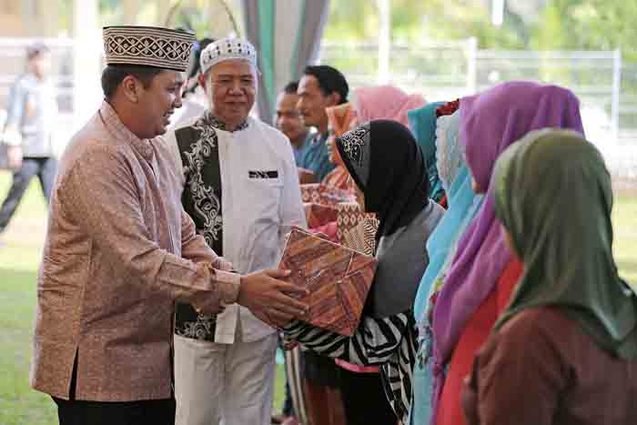 Gubernur Ridho Ficardo dan Wagub Bachtiar Basri menyerahkan bingkisan di sela-sela acara Tahlilan, Doa Bersama, dan peringatan Maulid Nabi di Mahan Agung, Kamis petang (31/12/2015). Foto: Gede Setiana BANDARLAMPUNG, Teraslampung.com —...