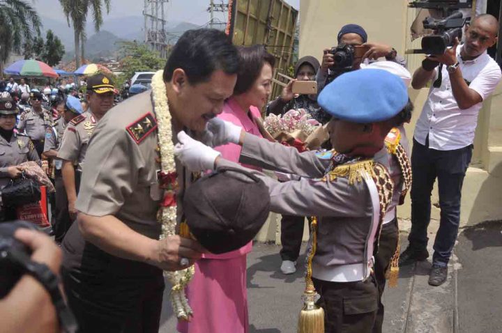 BANDARLAMPUNG — Polda Lampung menyambut kedatangan Irjen Pol Suroso Hadi Siswoyo sebagai Kapolda Lampung menggantikan Irjen Pol Sudjarno, Rabu (6/9/2017) siang sekitar pukul 11.25 WIB.