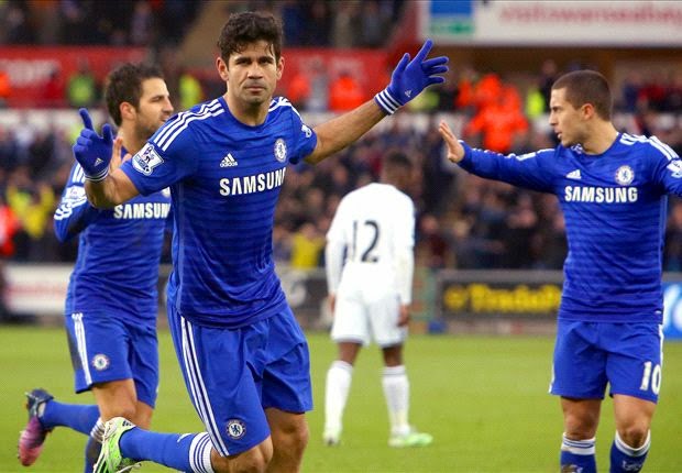 Tak tanggung-tanggung gawang Si Angsa diberondong lima gol tanpa balas. Masing-masing dua gol dari Oscar dan Diego Costa serta tambahan dari Andreas Schurrle di babak kedua memperkokoh posisi Chelsea di puncak klasemen Liga Primer Inggris dengan 52 poin.